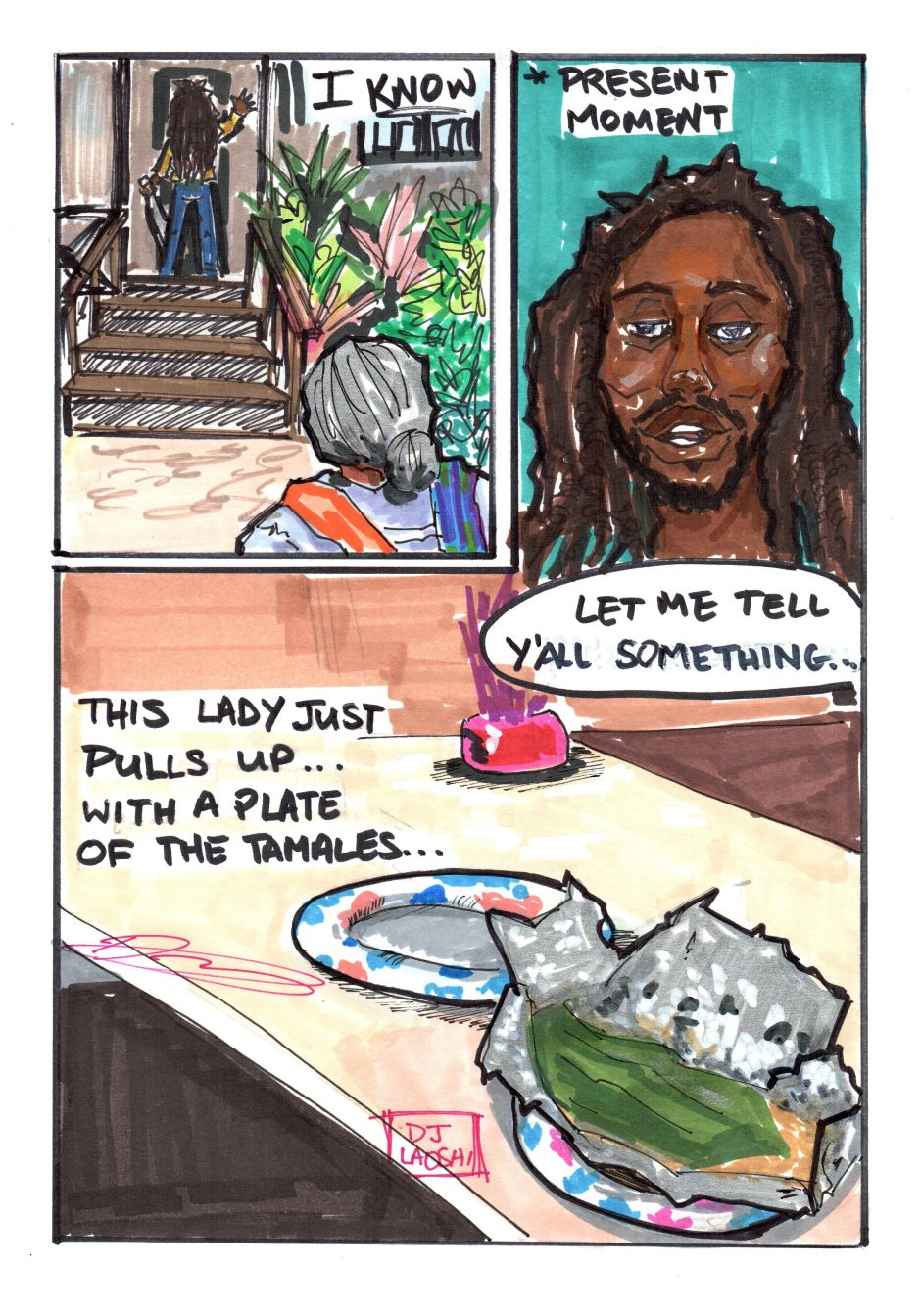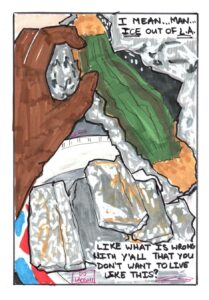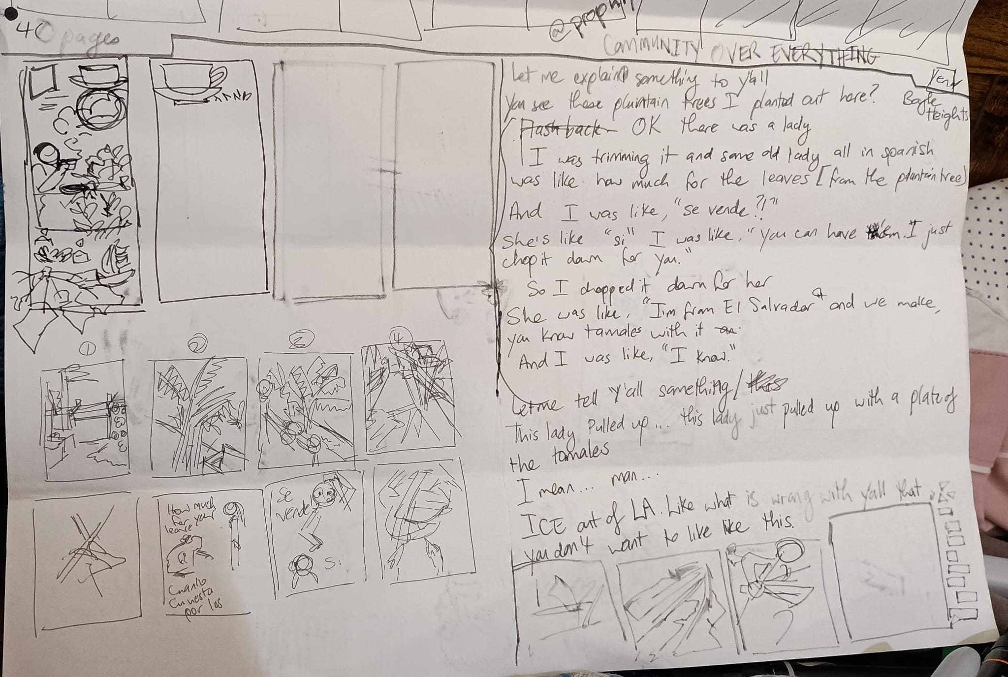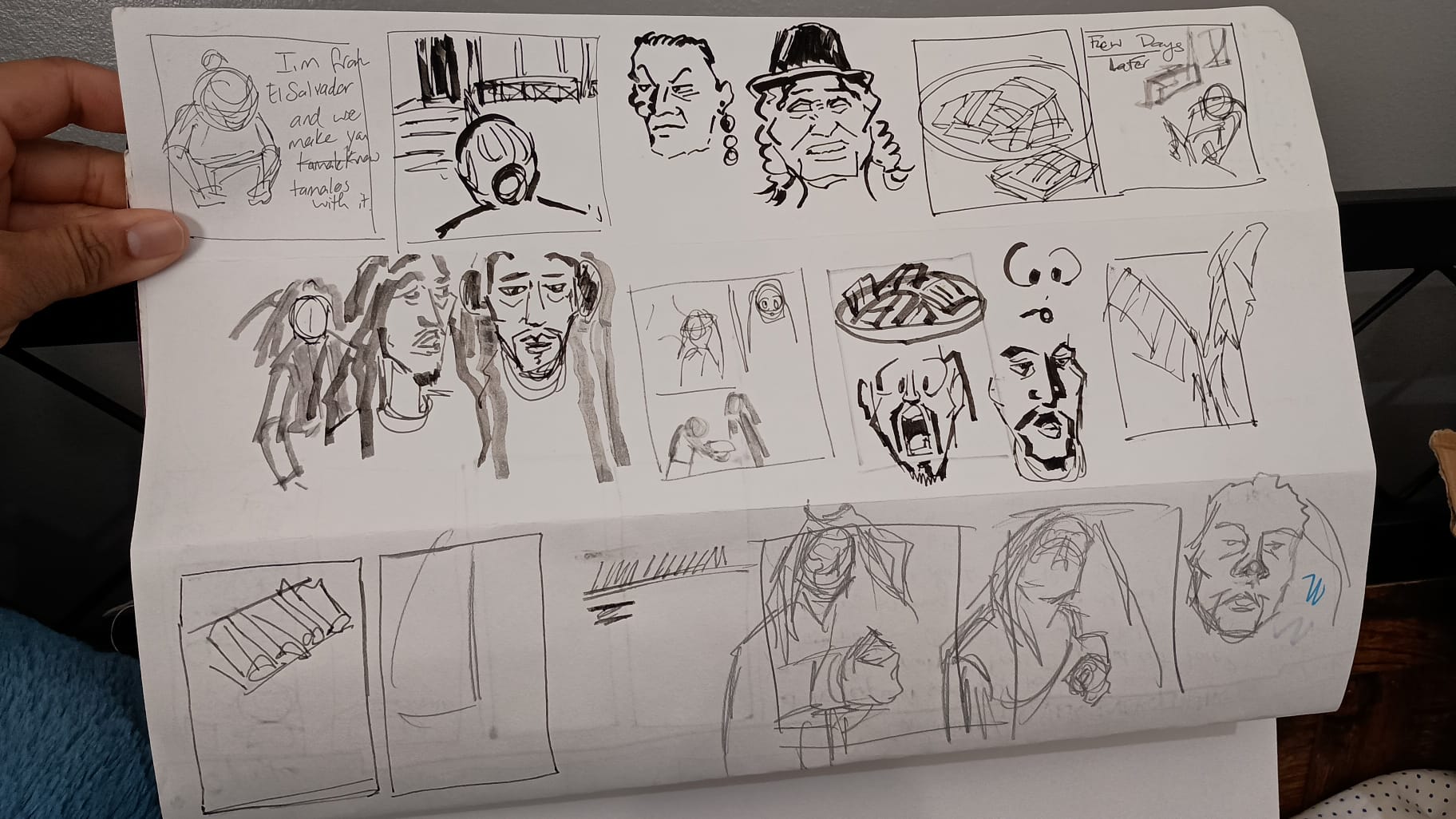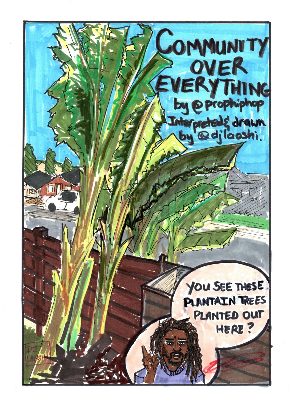 So I was online and saw a video from @prophiphop where he spoke about the strength of community in the face of an ever repressive regime. The video struck a cord with me to the point where I decided to make a comic based on his story. This was interesting because I storyboarded using the video and filling in the gaps of the story for the characters. Storyboarding and planning took about a day, and then the 6 pages were finished in 2 days. I tried to bring a level of sensitivity and joy to the subject, even with touching on the current situation. This was done on 9x 11 comic book paper using Posca Markers, inks, and Markers. If you wish to inquire for a collaboration, you can drop me a message.